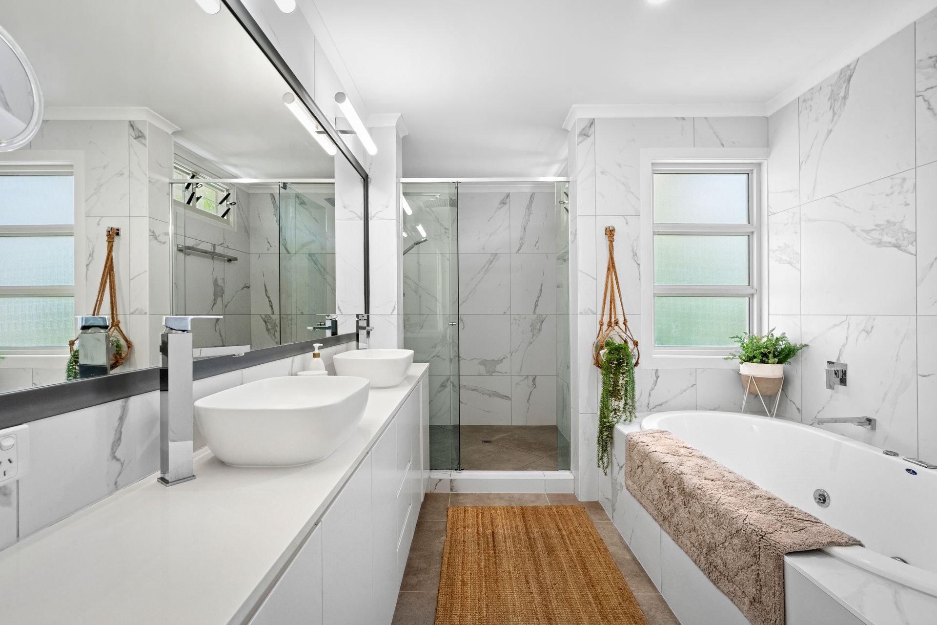 The designer kitchen is a chef’s delight, featuring sleek stone benchtops, a spacious island, and top-quality appliances — ideal for everything from leisurely brunches to gourmet seafood feasts made with the freshest local produce.