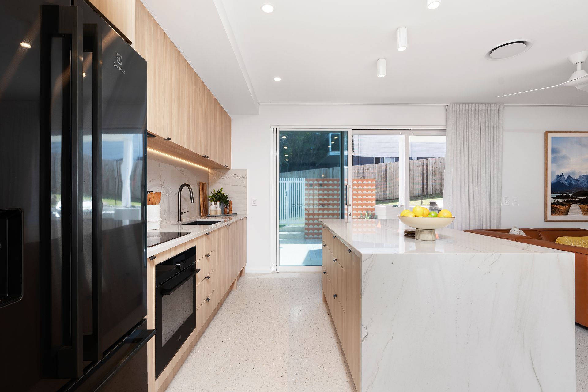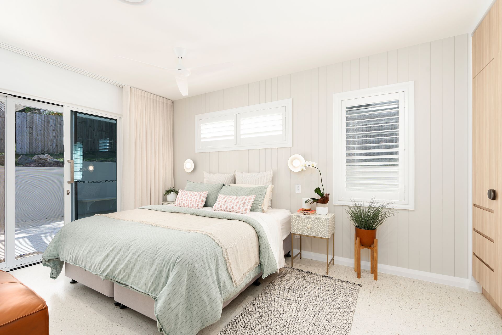 With eco smart doubled glazed windows this energy conscious home has been built for comfort, noise reduction from the busy holiday periods and energy retention in the quieter off season months. These great sliders open up to a beautiful green courtyard where you can feel and smell the ocean breeze whilst offering serene views and ensuring tranquillity. Ducted air conditioning throughout the property providing climate control to suit your needs, your stay promises to be both comfortable and relaxing.