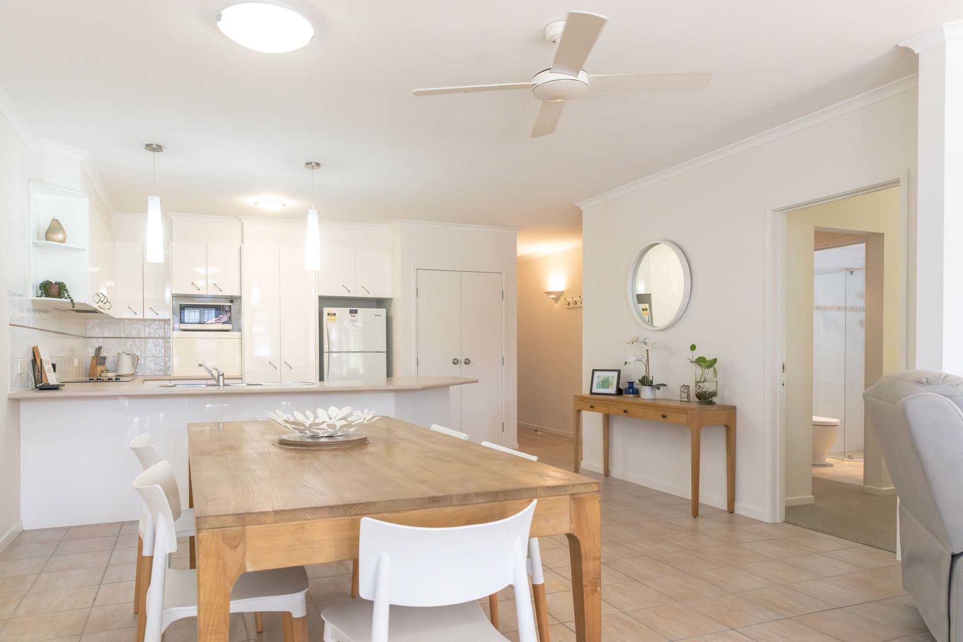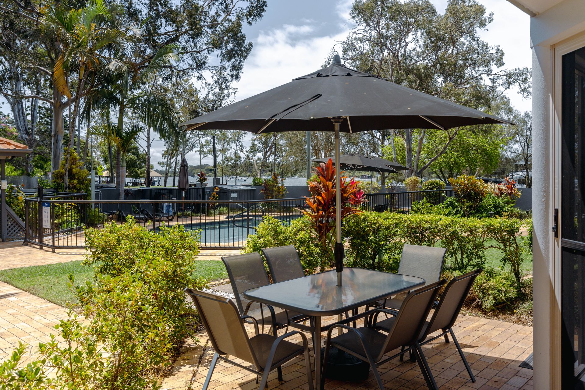 Designed for effortless holiday living, this spacious retreat is filled with natural light and warmth all day long. The open-plan living area flows seamlessly onto your private courtyard – the perfect spot for morning coffee or sunset drinks while overlooking the pool, tropical gardens and glimpses of the river beyond.