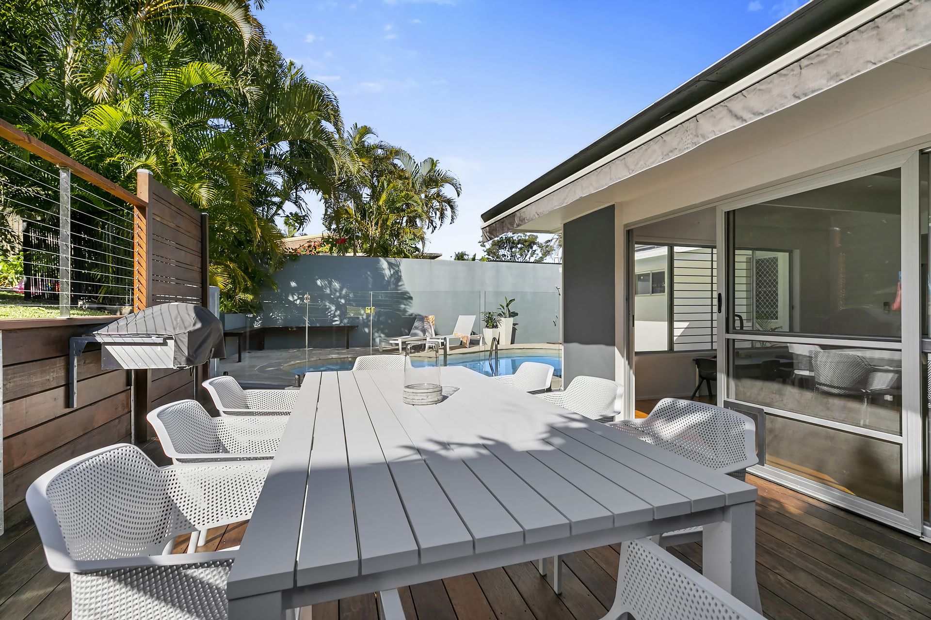 “In a word WOW. My family and I loved our stay - this place has everything you would want to enjoy a relaxing break in the sun. We didn’t want to leave! Everything has been carefully thought of to make your stay very enjoyable; from a coffee machine for the adults to beach toys for the kids. Relaxing by the private pool after a day at the beach, a beer/wine on the deck watching the sky turn all shades of pink, BBQ on the back deck and then retiring to super comfy beds! Location is fantastic- short walk to great shops and eateries. Walk into the bustling Hasting St or the beautiful National Park…. We will be booking again soon.”