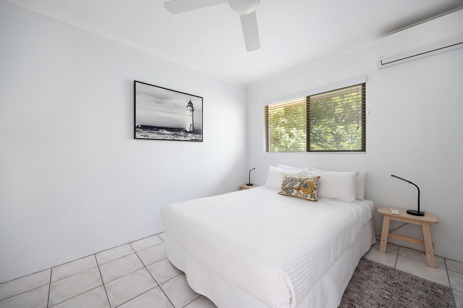 Upstairs are two bedrooms await, each boasting its own ensuite bathroom, and individually airconditioned with the main bedroom also featuring another front balcony for added relaxation. A European-style laundry ensures convenience during your stay.