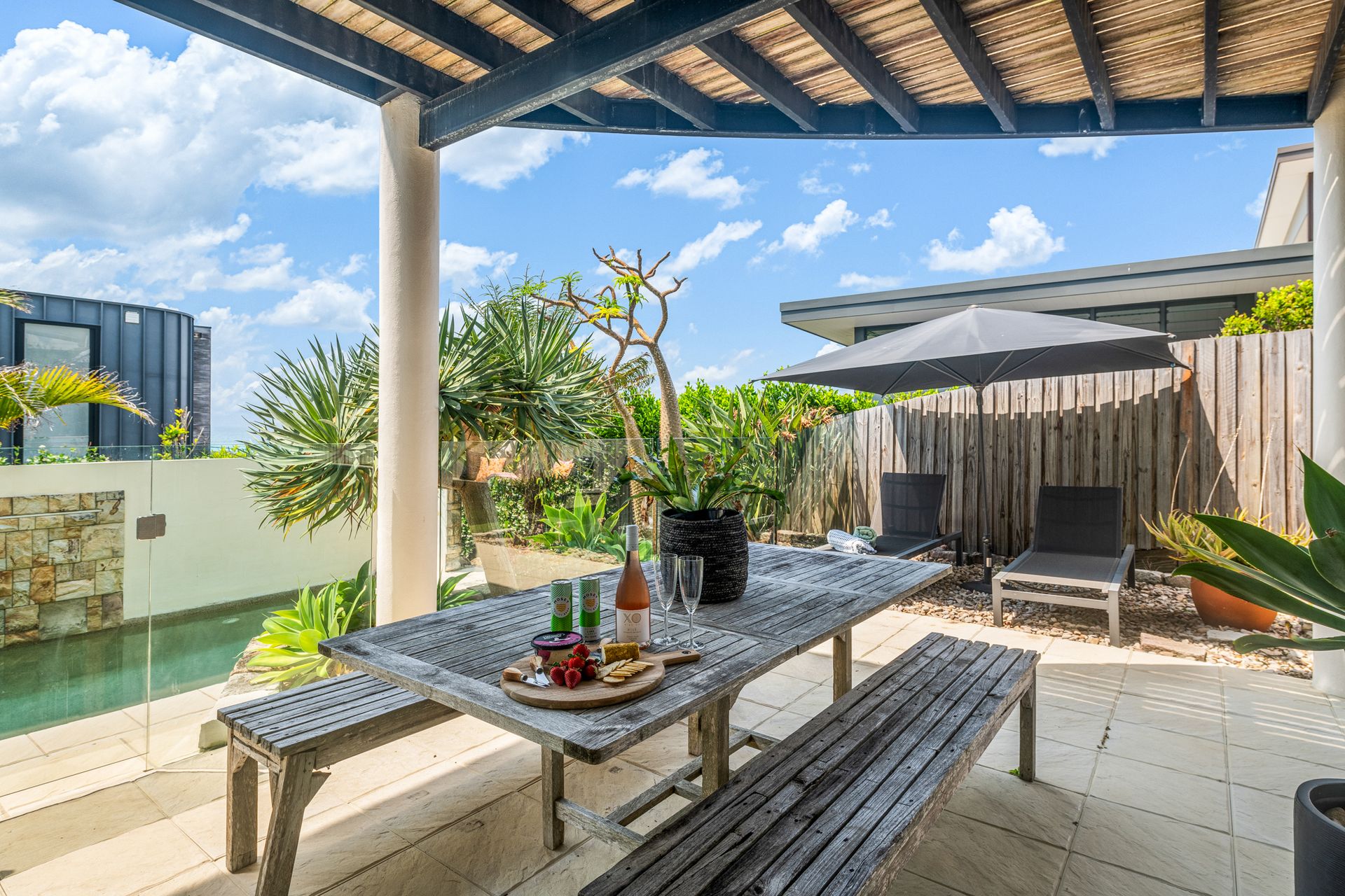 Spend your mornings waking to the sound of waves, with sandy toes and surfboards ready for the short stroll through the back gate to the beach. Afternoons are made for lounging by the sparkling turquoise pool, enjoying BBQs on the sandstone terrace, or relaxing with a cool drink at the granite-topped bar overlooking the sea.