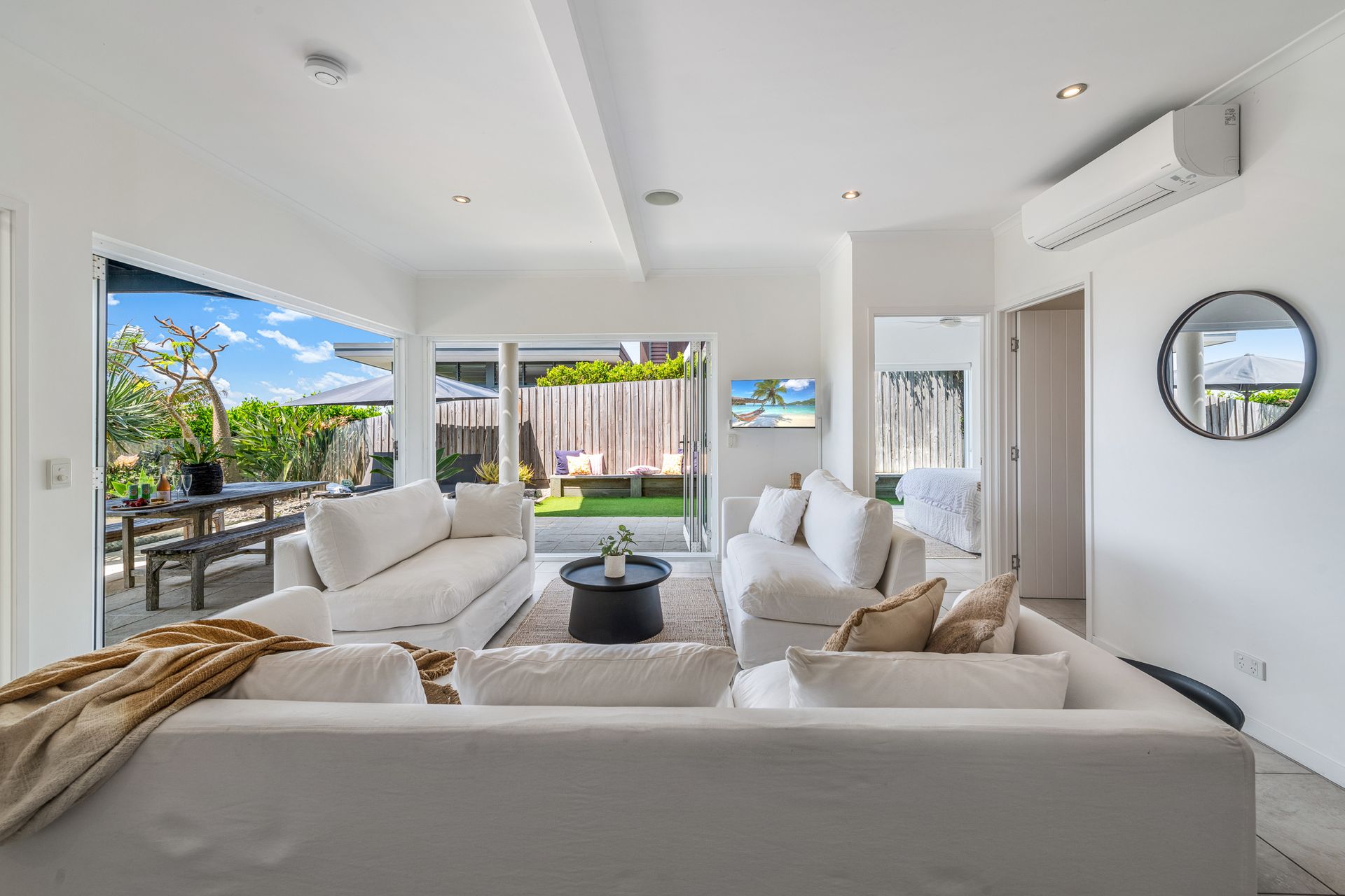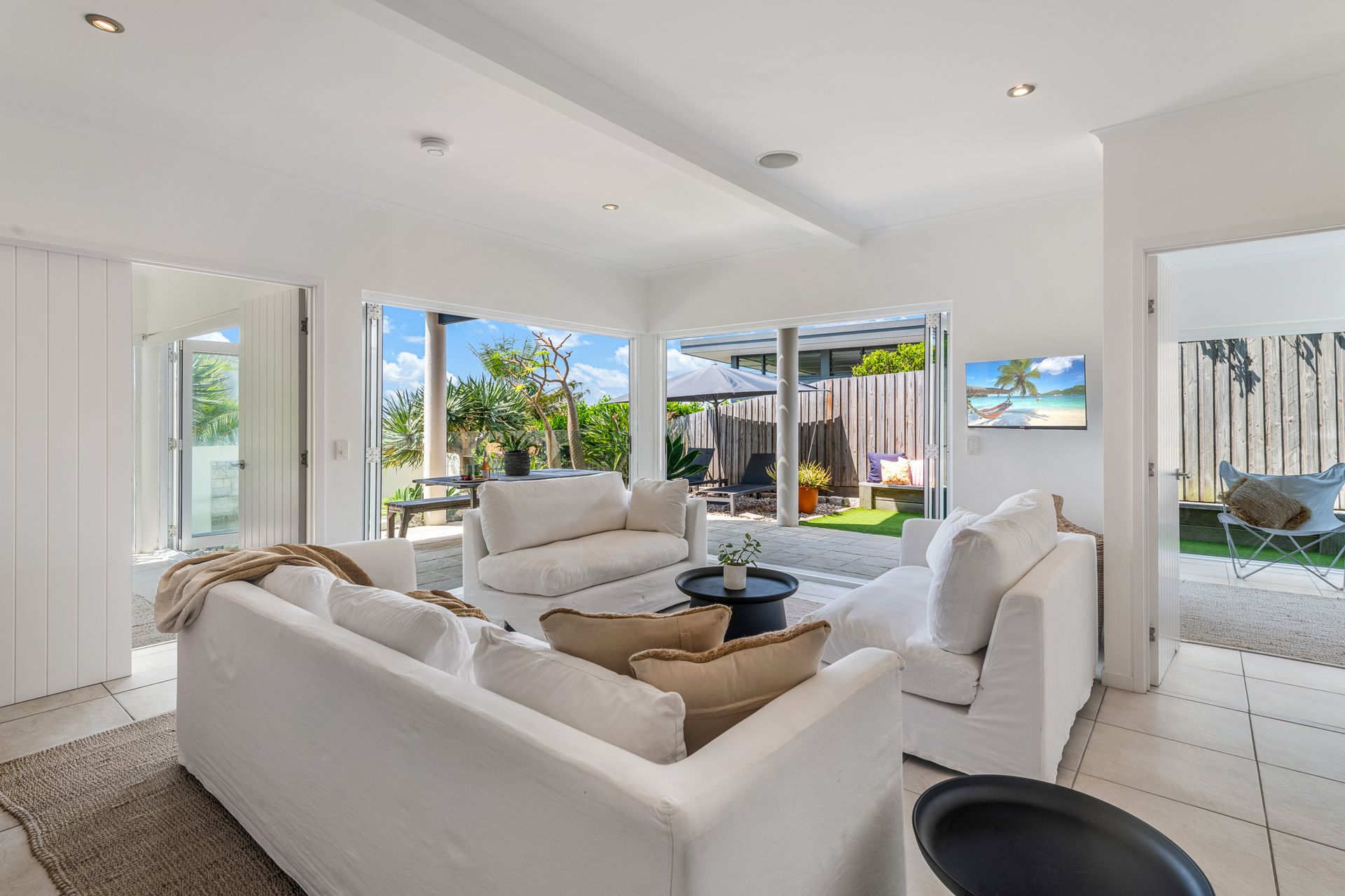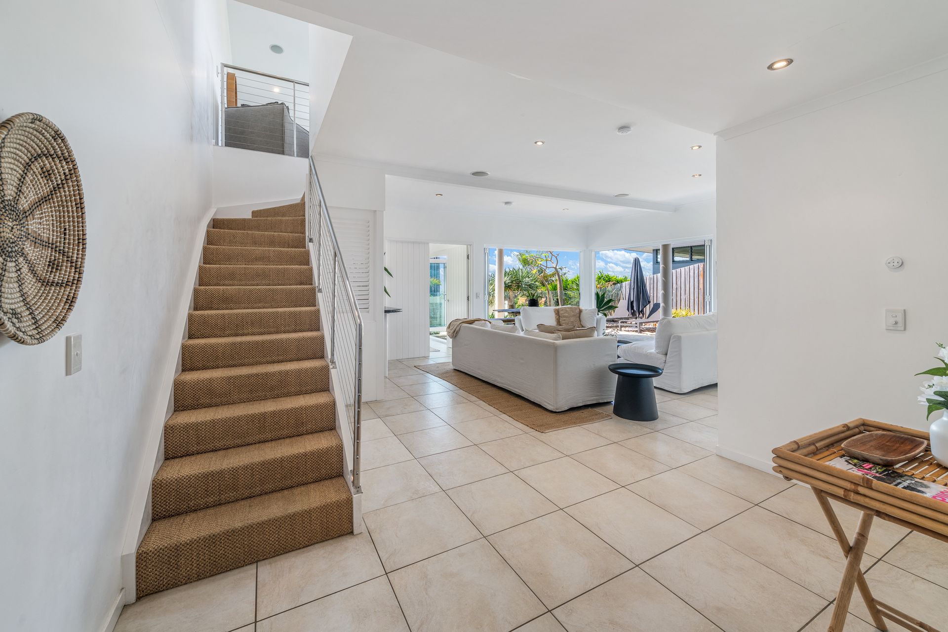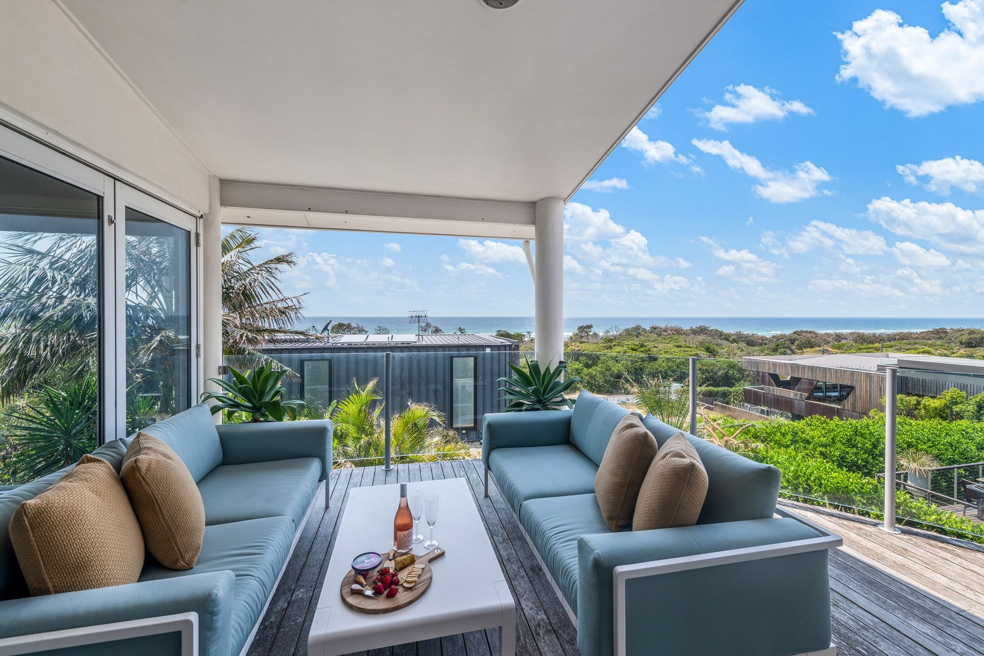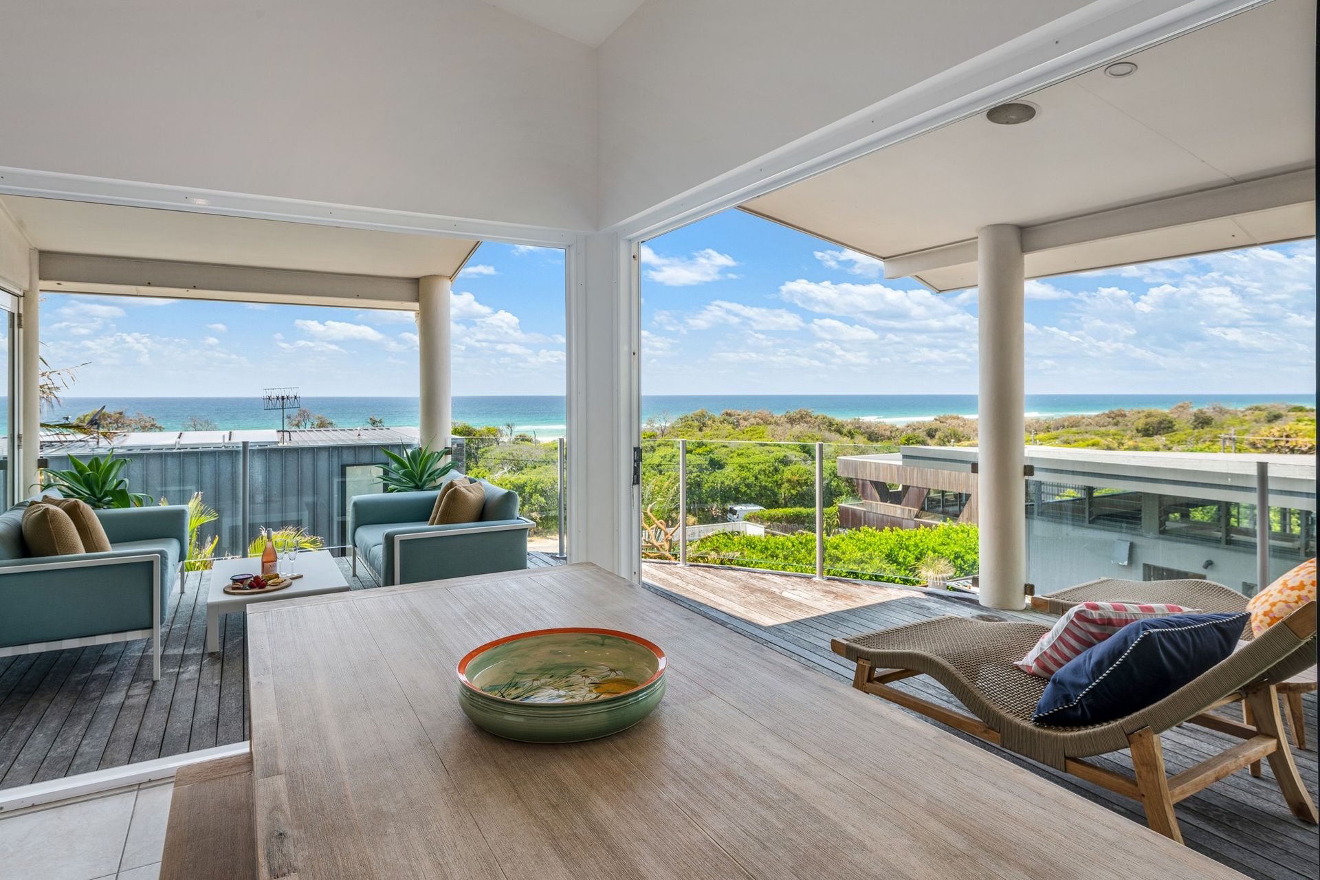 Step through solid timber doors to discover airy living spaces framed by bi-fold doors, high ceilings, and wide terraces that draw in sunshine and sweeping views of the Pacific. With its chic neutral palette, ocean outlooks, and seamless indoor-outdoor flow, this home is a sanctuary for families and friends alike.