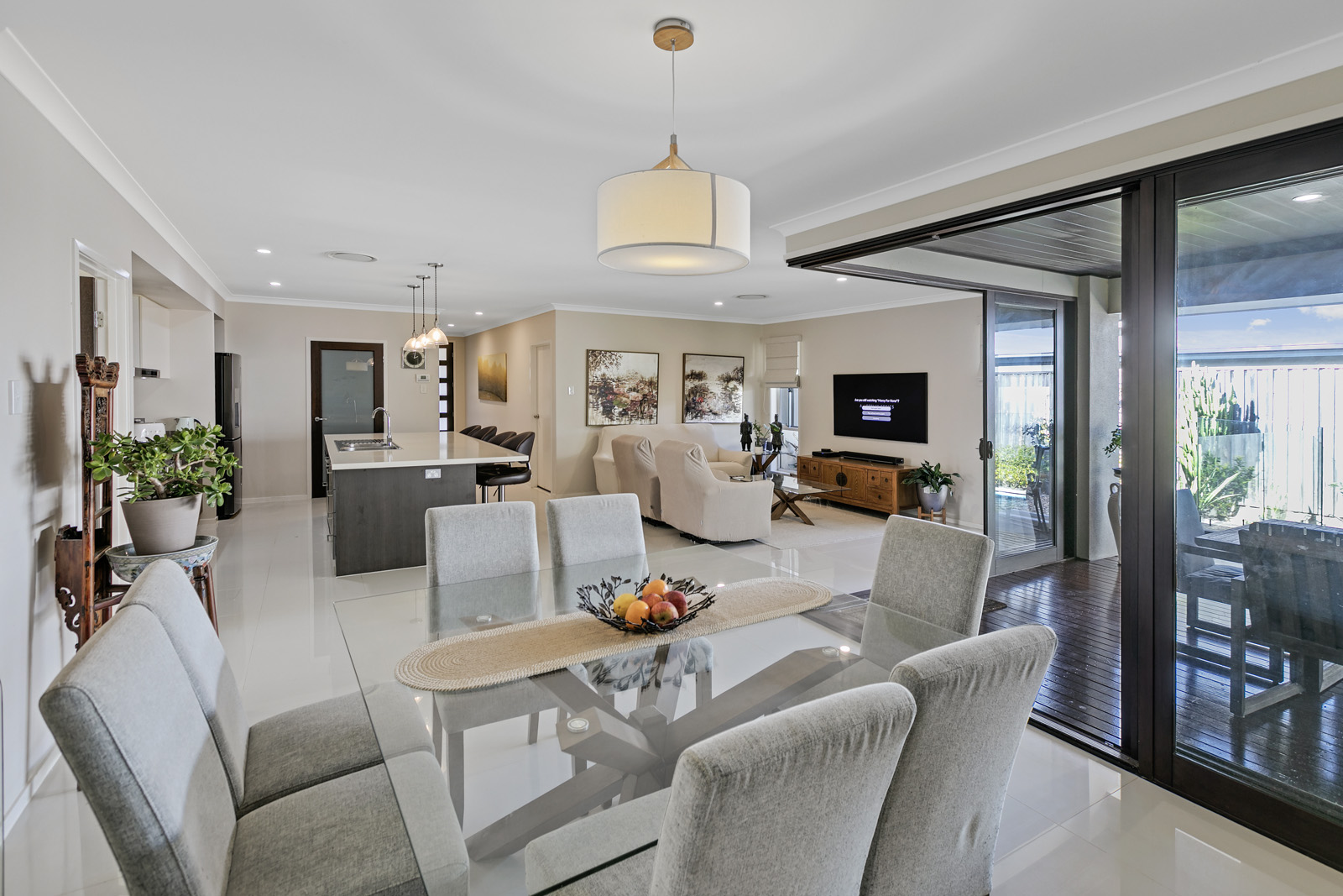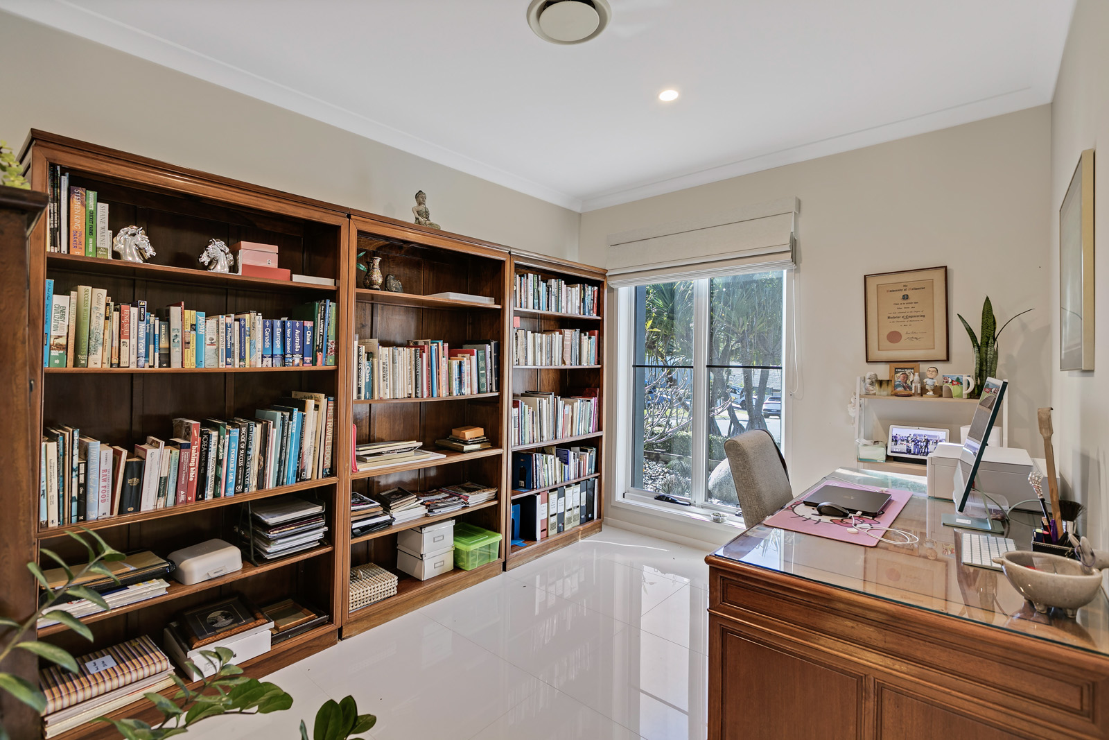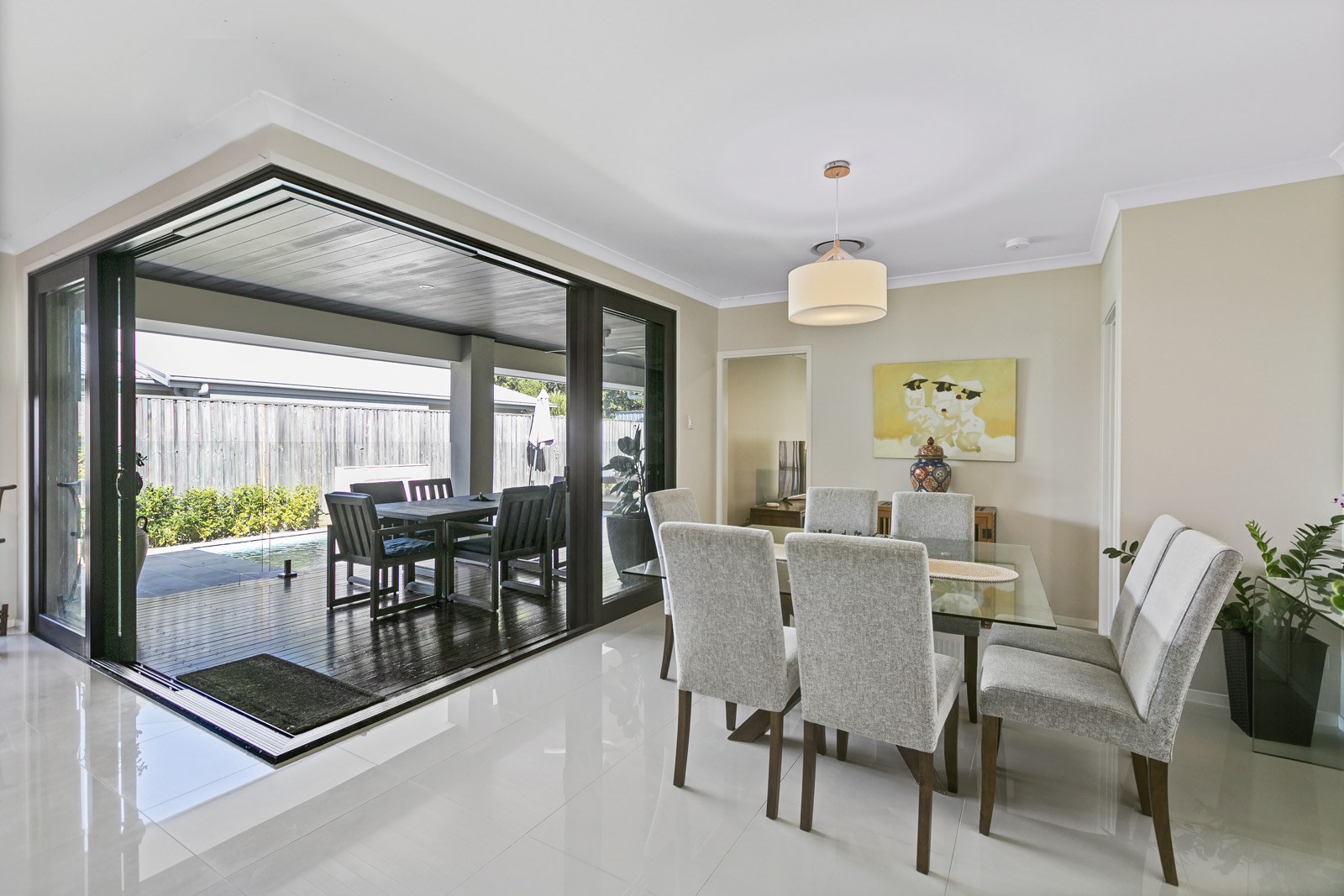 The entire family will enjoy movie nights in the dedicated media room or relax by the covered outdoor terrace beside the sparkling in-ground pool, all flowing seamlessly from the fully tiled living zones.