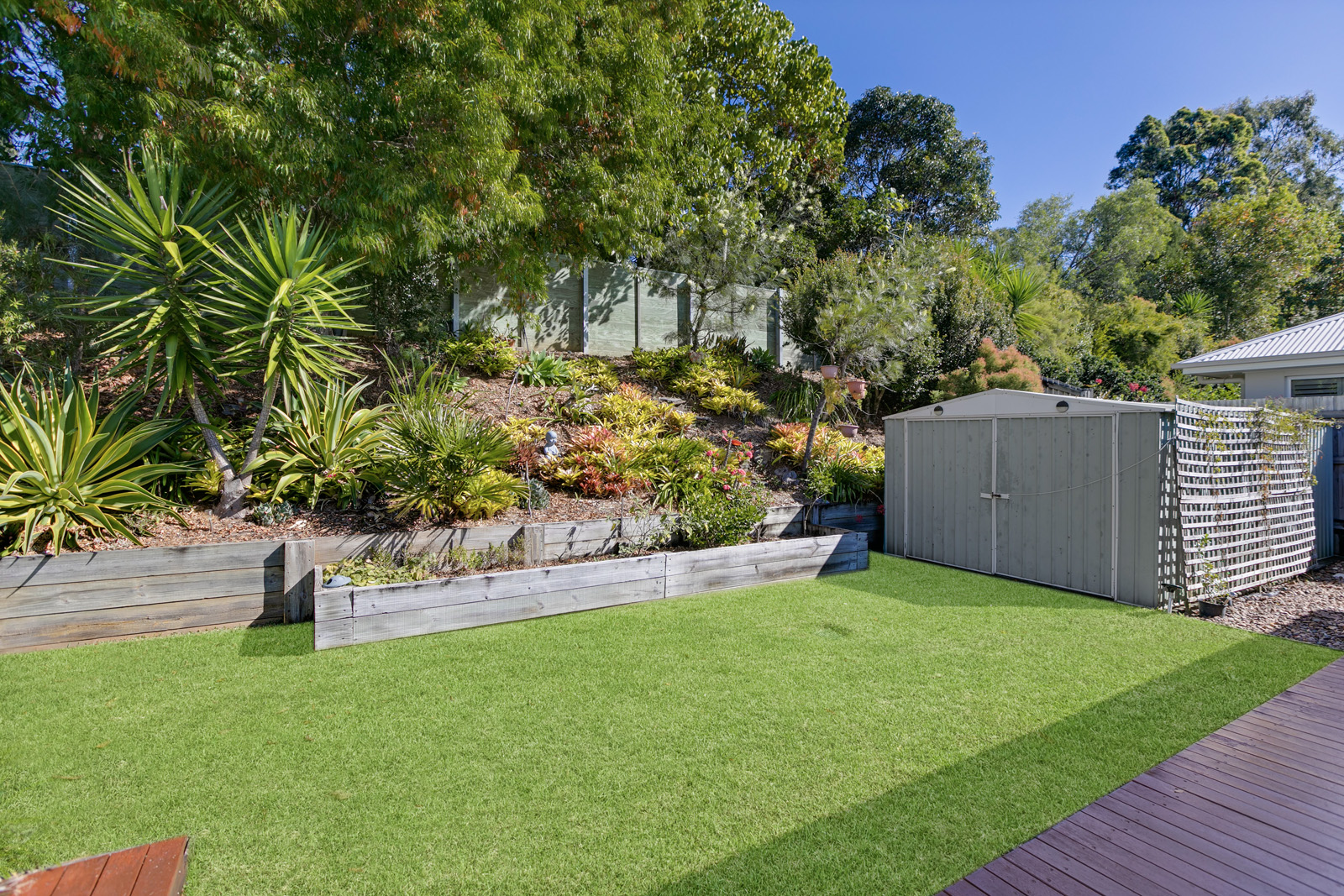 Manicured, fully fenced gardens, garden shed, and elevated position to catch the breezes