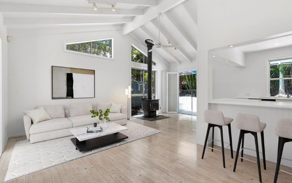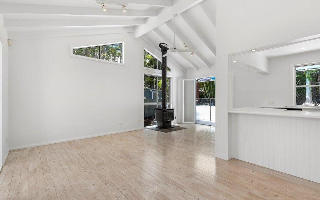 From the moment you step inside, the home feels considered and complete. Bright, crisp interiors meet pale timber floors, while high raked ceilings lift the main living zone into something airy and sun filled. This is a home designed for real life in Noosa, easy, relaxed, and made for time spent together.
