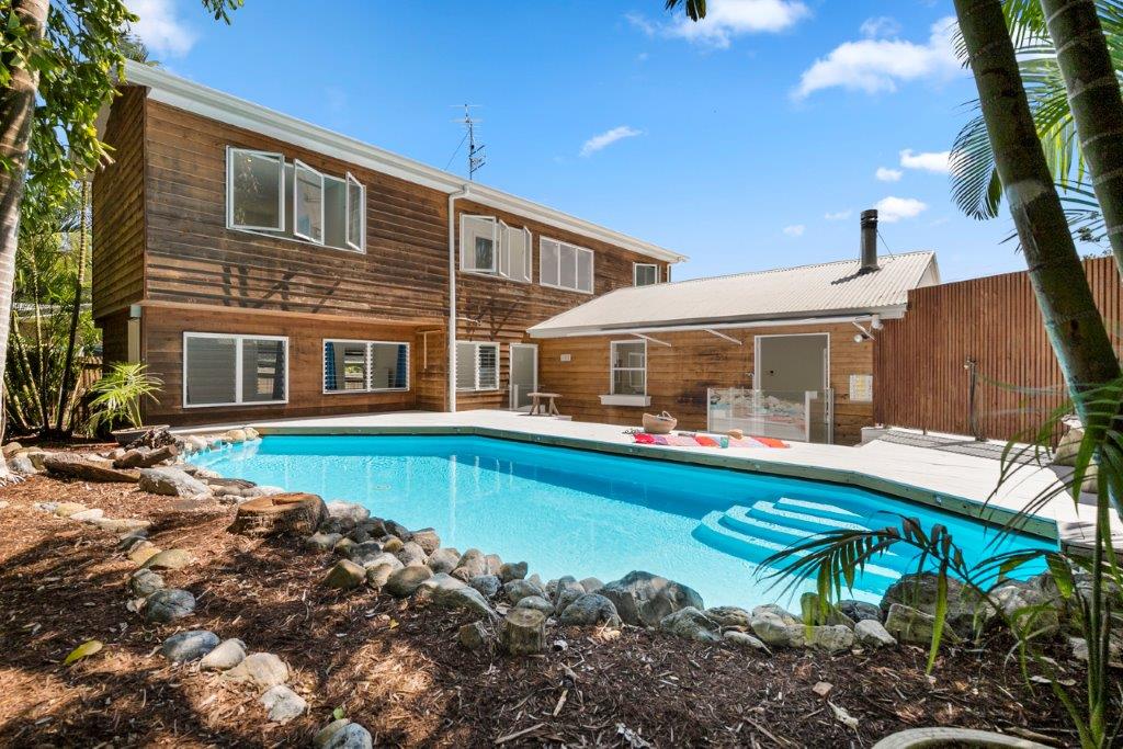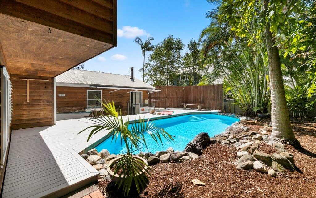 Outdoors is where the lifestyle truly lands. A wide deck becomes your everyday retreat, perfect for morning coffee, family dinners, or a quiet reset after the beach. Beyond, the pool area is framed by greenery and timber, creating a private sanctuary that feels removed from the world, yet sits right in the middle of everything that matters.