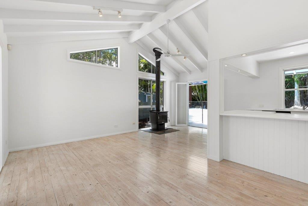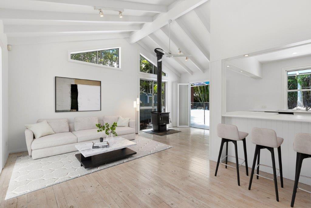 From the moment you step inside, the home feels considered and complete. Bright, crisp interiors meet pale timber floors, while high raked ceilings lift the main living zone into something airy and sun filled. This is a home designed for real life in Noosa, easy, relaxed, and made for time spent together.